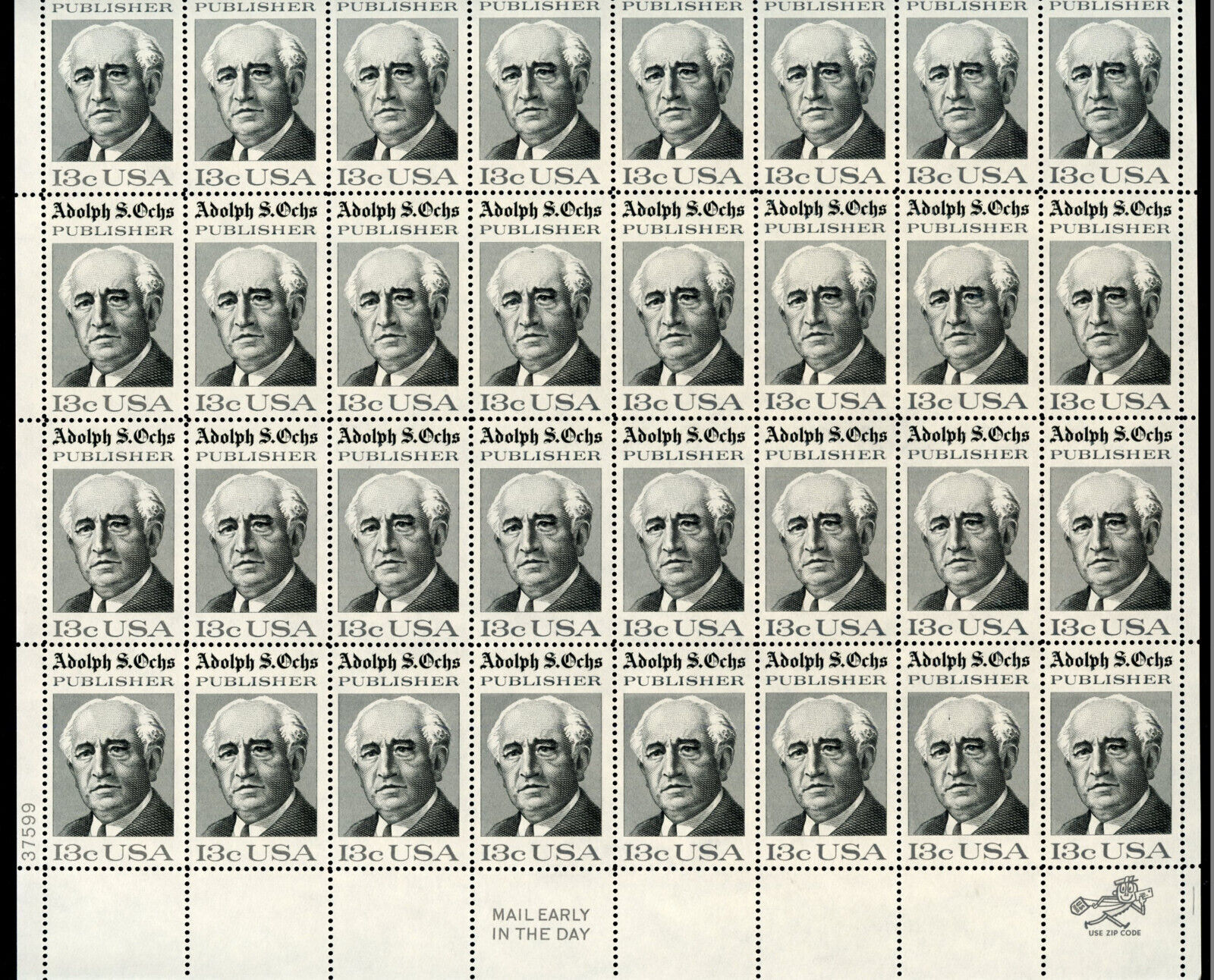 UNITED STATES SCOTT #1700 13c ADOLPH S. OCHS SHEET(32) MINT NEVER HINGED