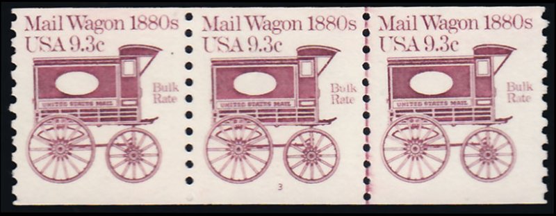 9.3c Mail Wagon Transportation Coil Plate 3 Strip of three. Mint never hinged.Seller Information