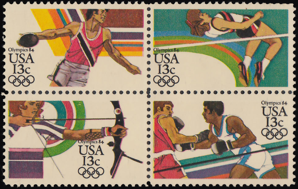 13c Boxing, 13c Discus, 13c Archery and 13c High Jump 1983 Olympics Se-tenant Block of four. Mint never hinged.Seller Information