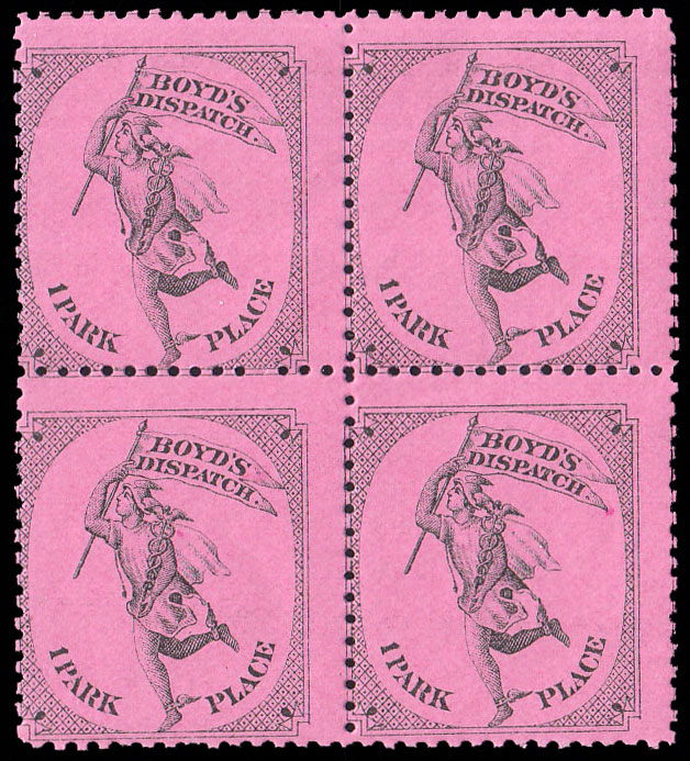 [1c] Mercury Series Type III Boyd's Dispatch Local Stamp. Block of four. Mint never hinged.