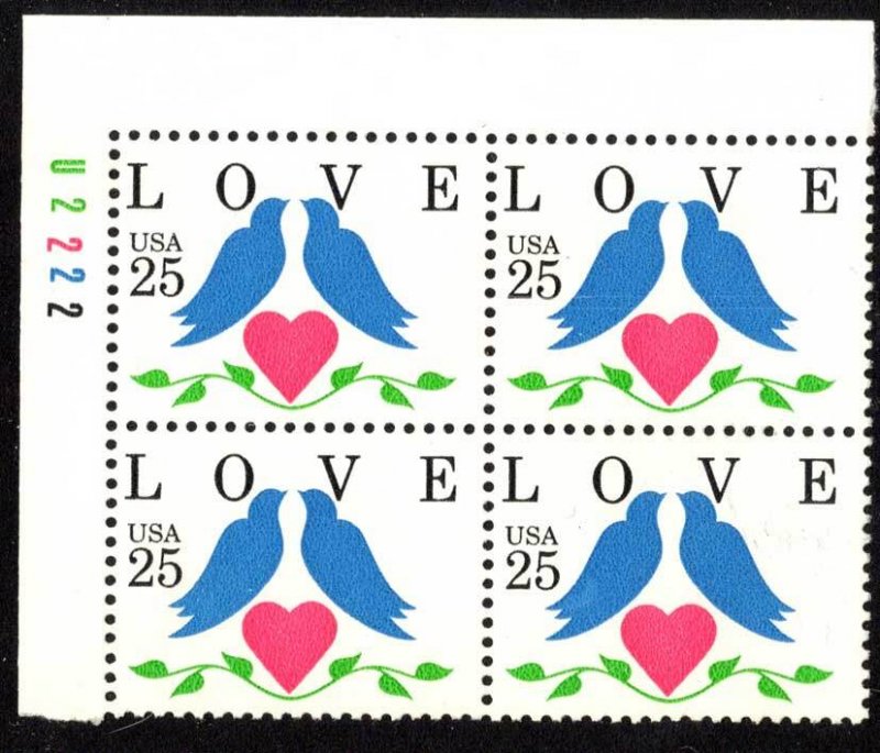 25c Love Plate U2222 Block Upper Left. Mint never hinged.