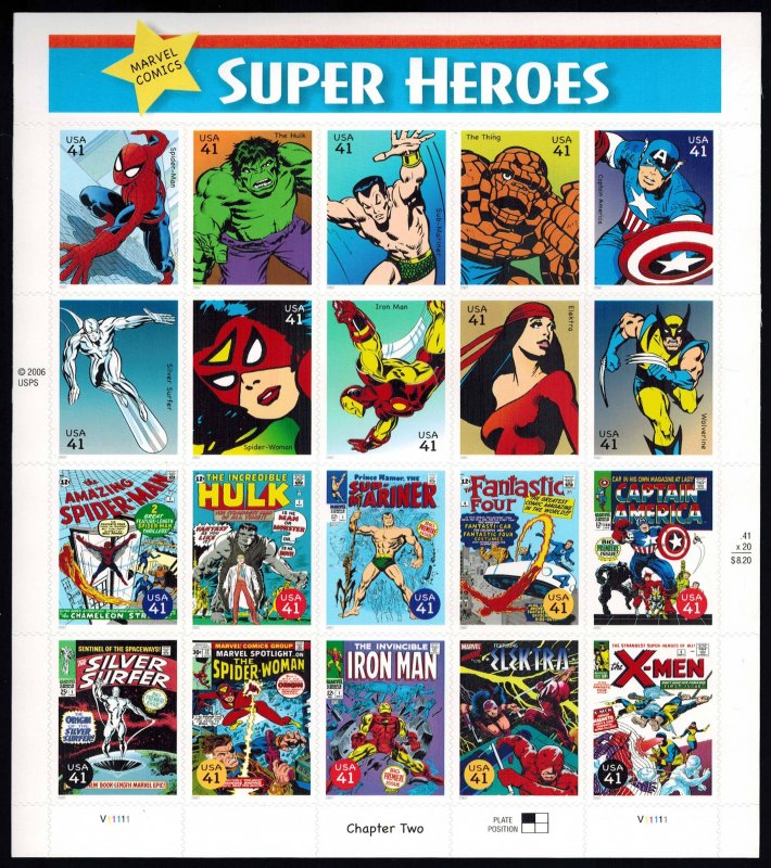 41c Marvel Comics Super Heroes Se-tenant pane of twenty. Mint never hinged.Seller Information
