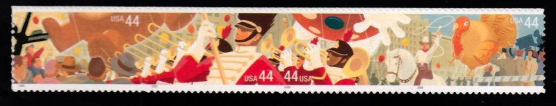 44c, 44c, 44c and 44c Thanksgiving Day Parade Se-tenant Strip of four. Mint never hinged.
