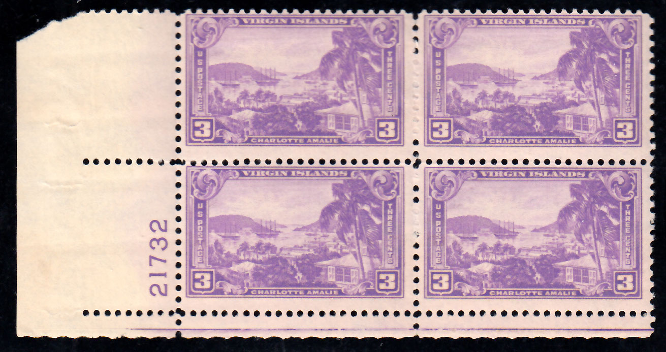 3c Virgin Islands Plate 21732 Block Lower Left. Mint never hinged.Seller Information
