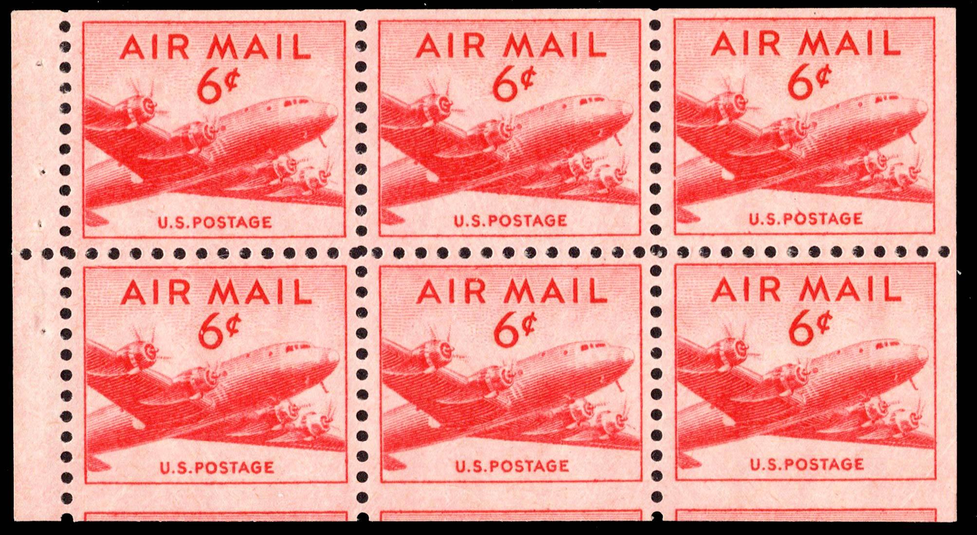 6c DC-4 Skymaster Booklet Pane of six. Mint never hinged.