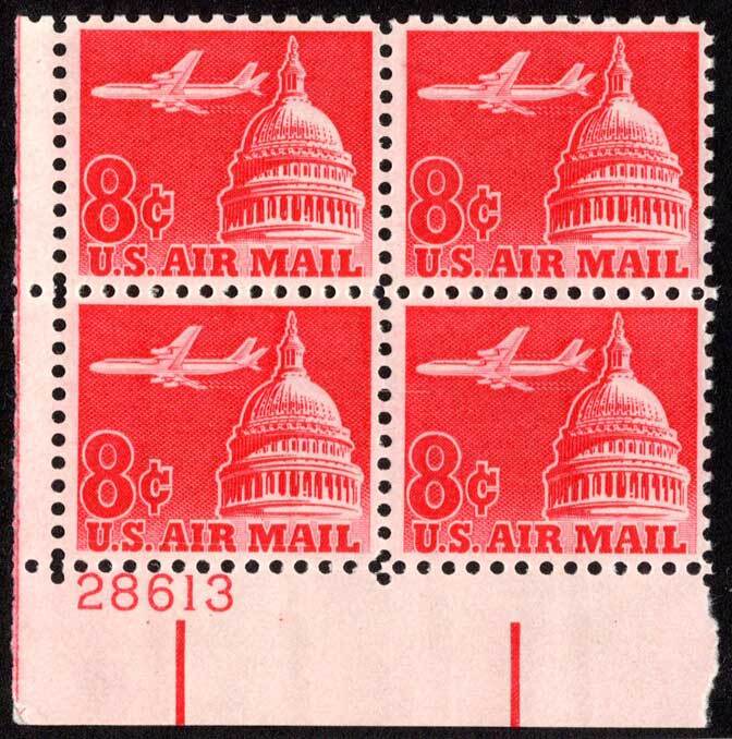 8c Jet Airliner Over Capitol Plate 27683 Block Bottom Left. Mint never hinged.Seller Information