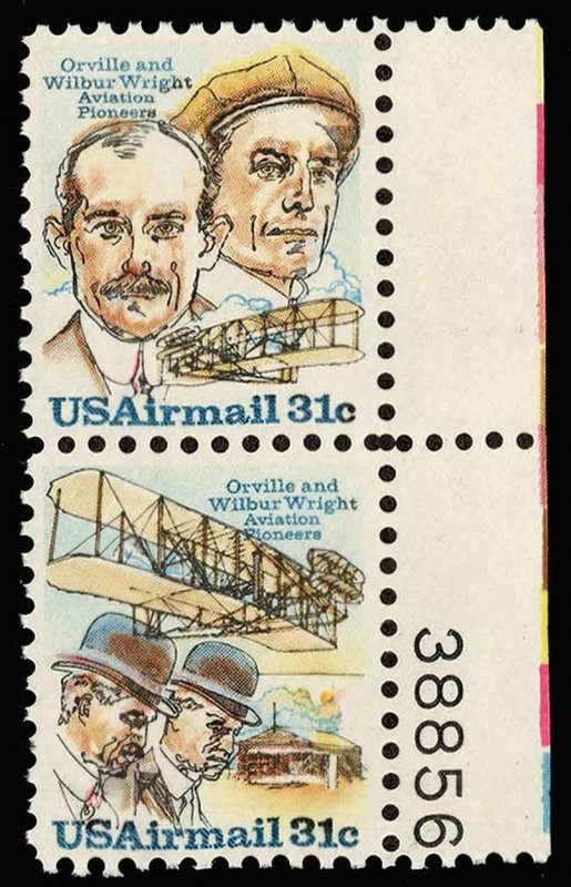 31c Wright Brothers and 31c Wright Brothers and Plane Se-tenant Vertical Pair Plate 38856 Single. Mint never hinged.