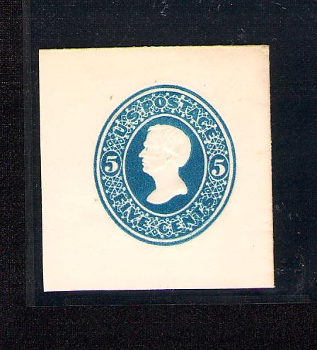 U.S. Cut square, 5c blue, white, die 2, full corner