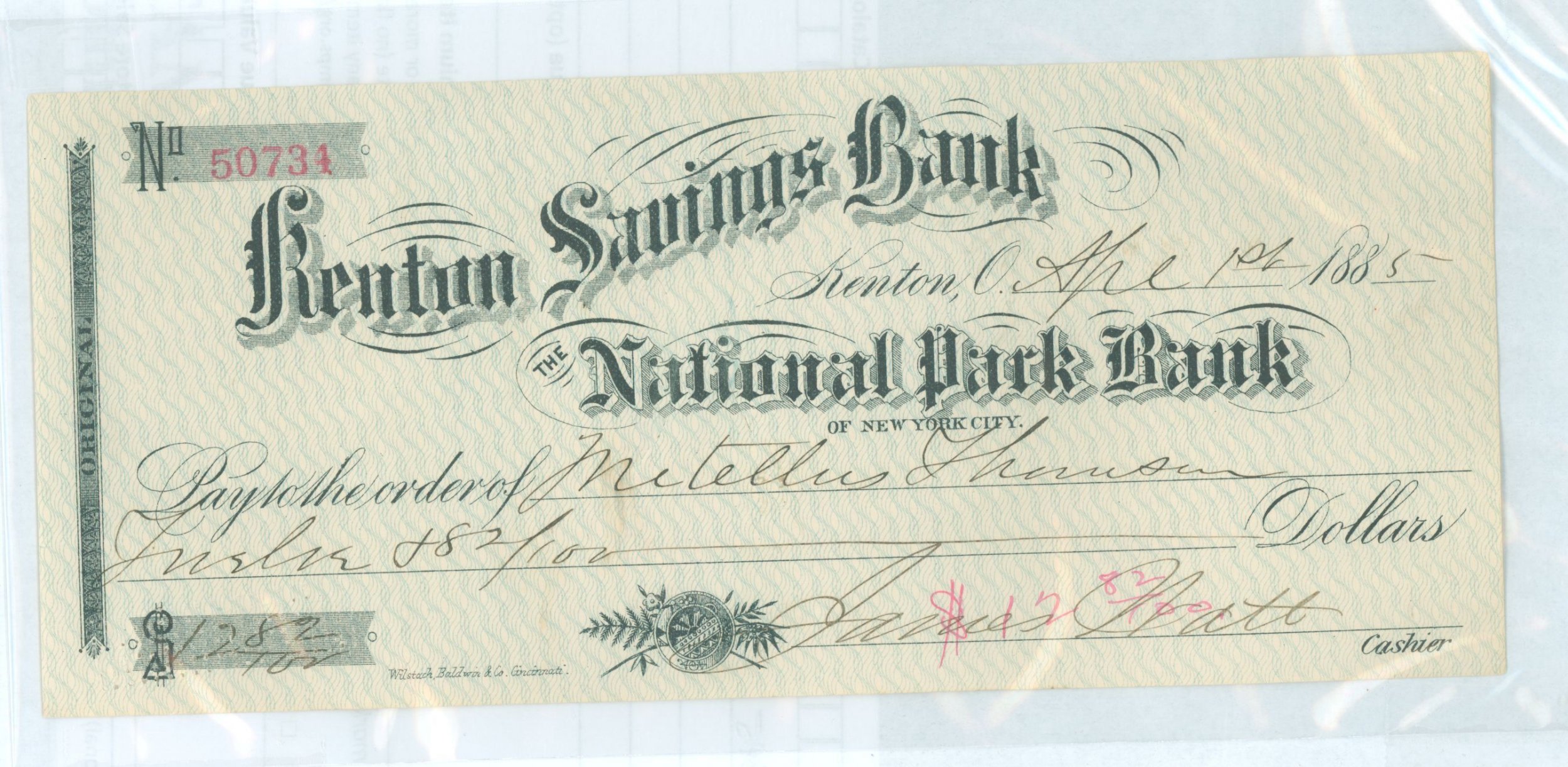 1885 Bank Check