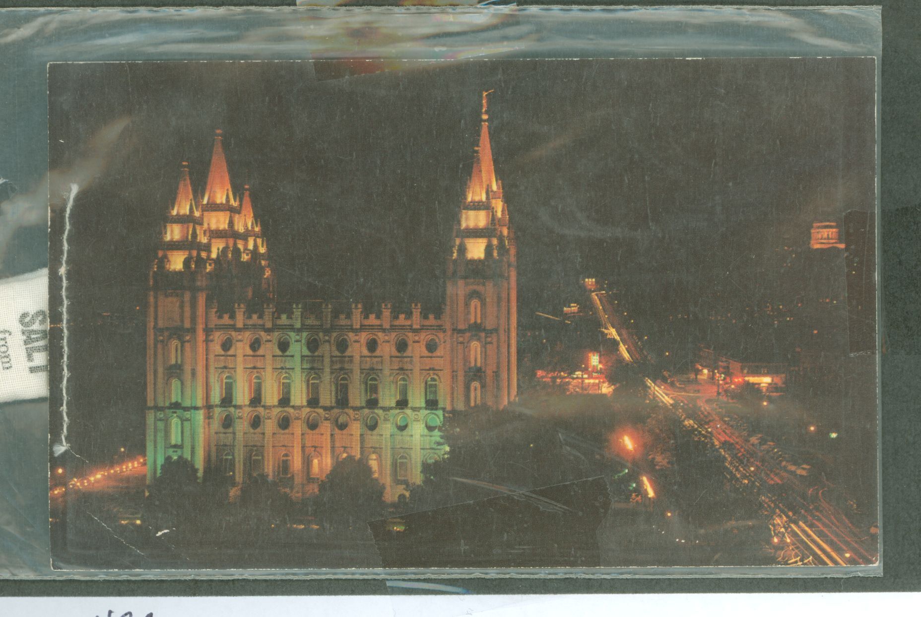Mormon Temple postcard with bag of salt from Great Salt Lake attached; American Philatelist, May 2022, pp. 424-431. APS Stamp Id: 501689268 APS Seller Id: 613621 Hinge Type: Not Specified