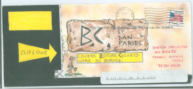 handpainted cachet by famous author of the B. C. comic artist, dan faries, autographed on left side of comic drawingAPS Stamp Id: 501769036