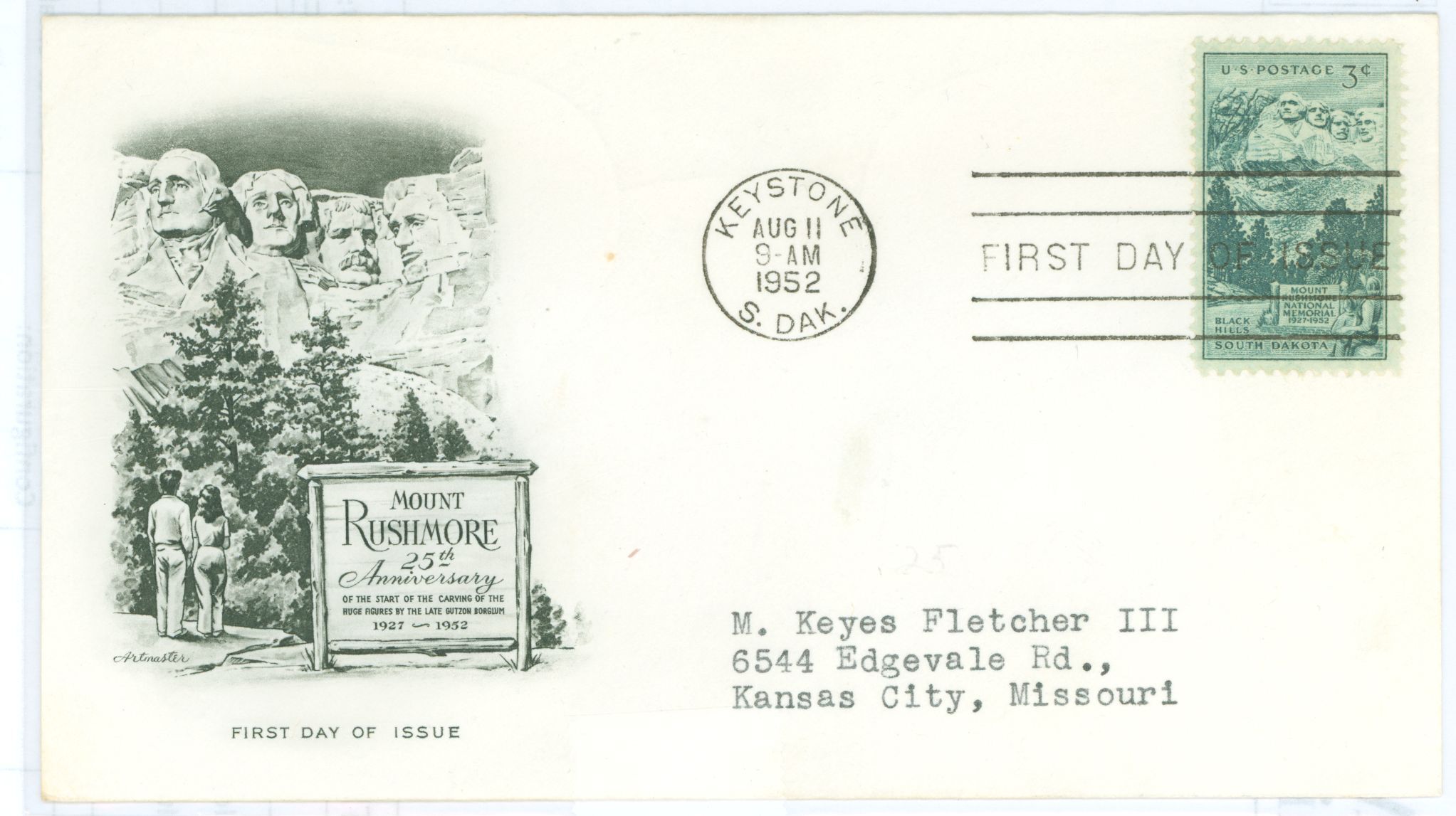 US 1011 1952 Mount Rushmore, typed address