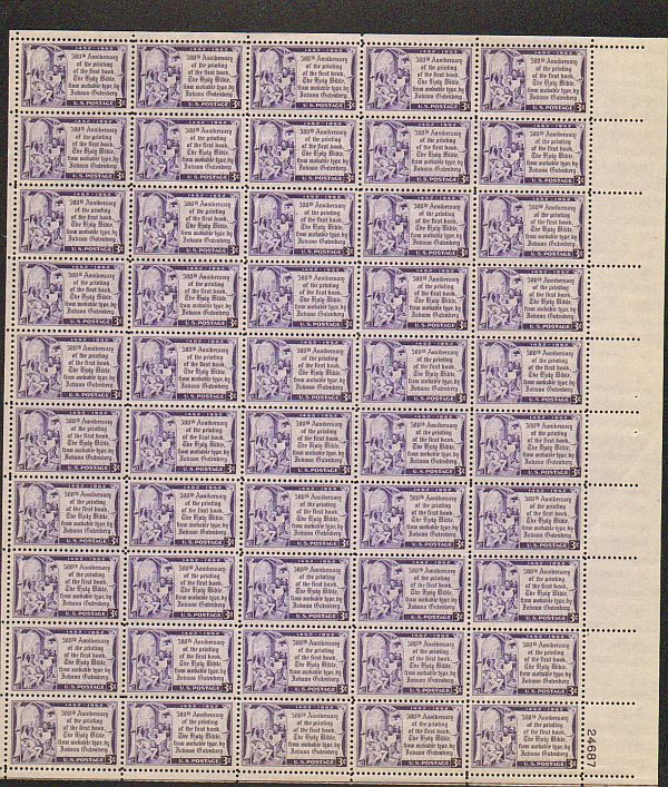 US #1014 Mint Sheet Gutenberg BibleThe image shown may not be the actual sheet you receive.