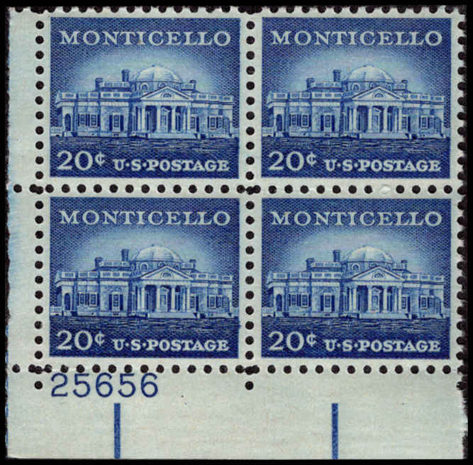 US #1047 MONTICELLO MNH LL PLATE BLOCK #25656