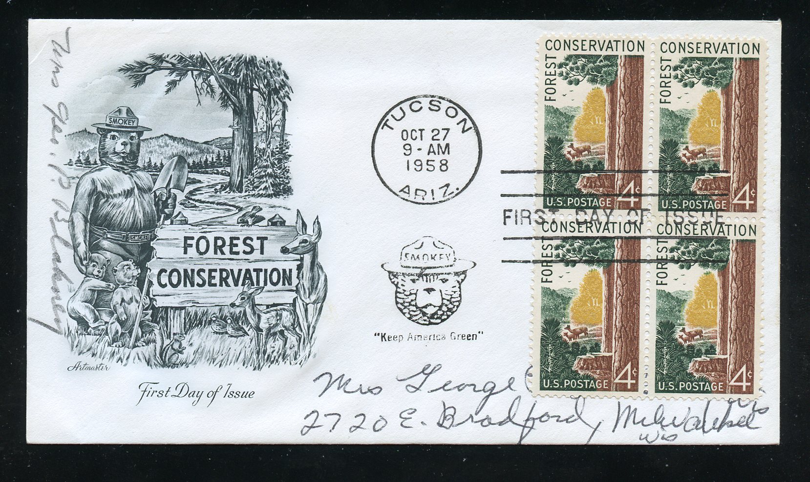 Scott 1122; Issued to publicize forest conservation and the protection of natural resources and to honor Theodore Roosevelt, a leading forest conservationist, on the centenary of his birth, ArtMaster cachet, FDC, flap is open and cover is addressedSeller Information