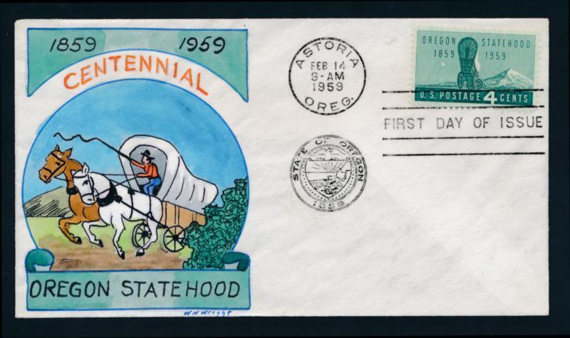 U.S. 1124 Wm. Wright hand painted FDC, Oregon