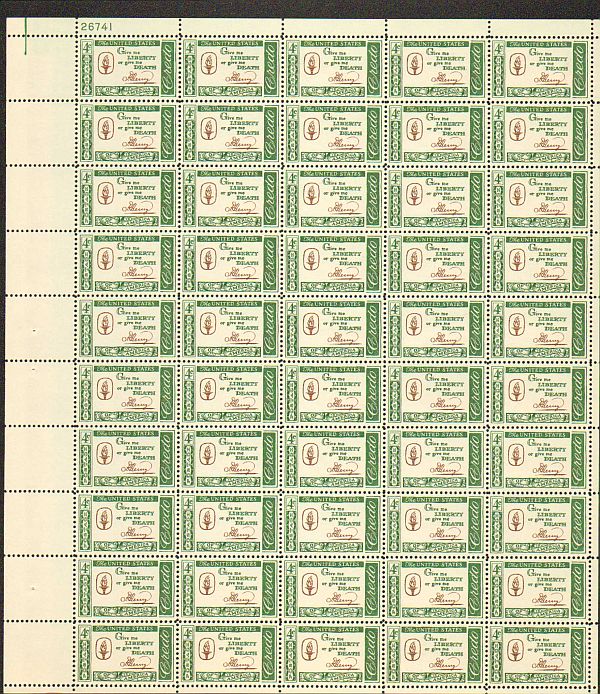 US #1144 Mint Sheet Patrick Henry Quote