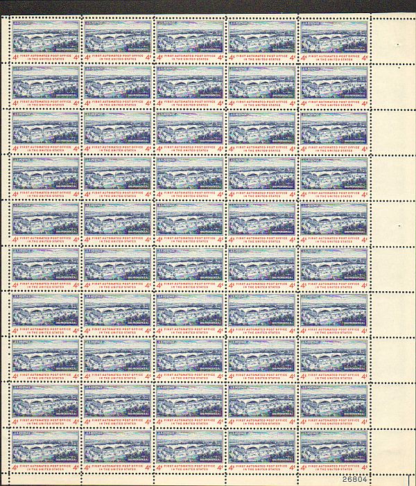 US #1164 Mint Sheet First Automated Post Office The image shown may not be the actual sheet you receive. Sheets will not be folded. Minor perf separations in the selvedge are normal and are not grounds for return. ... Read More