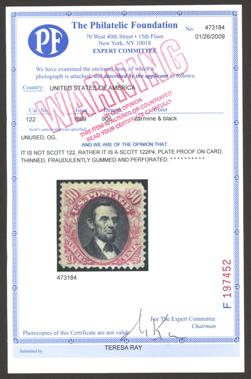 U.S. #122P4 MINT WITH PF CERTSeller Information