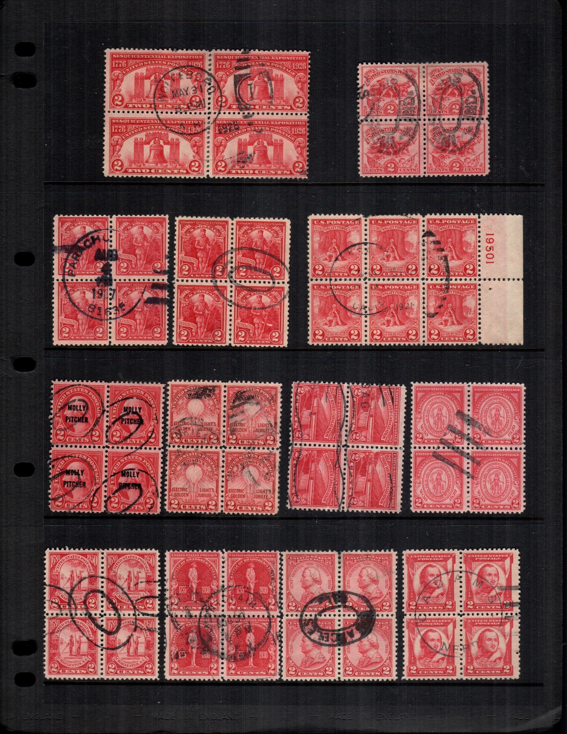 US 13 used blocks 2 cent reds