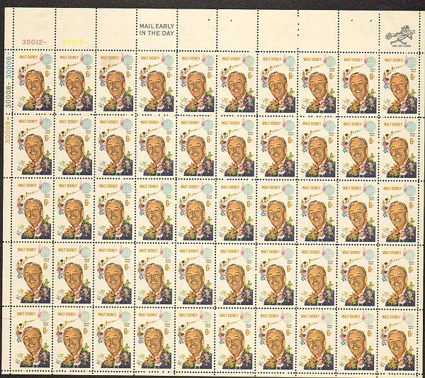 US #1355 Mint Sheet Walt DisneyThe image shown may not be the actual sheet you receive.
