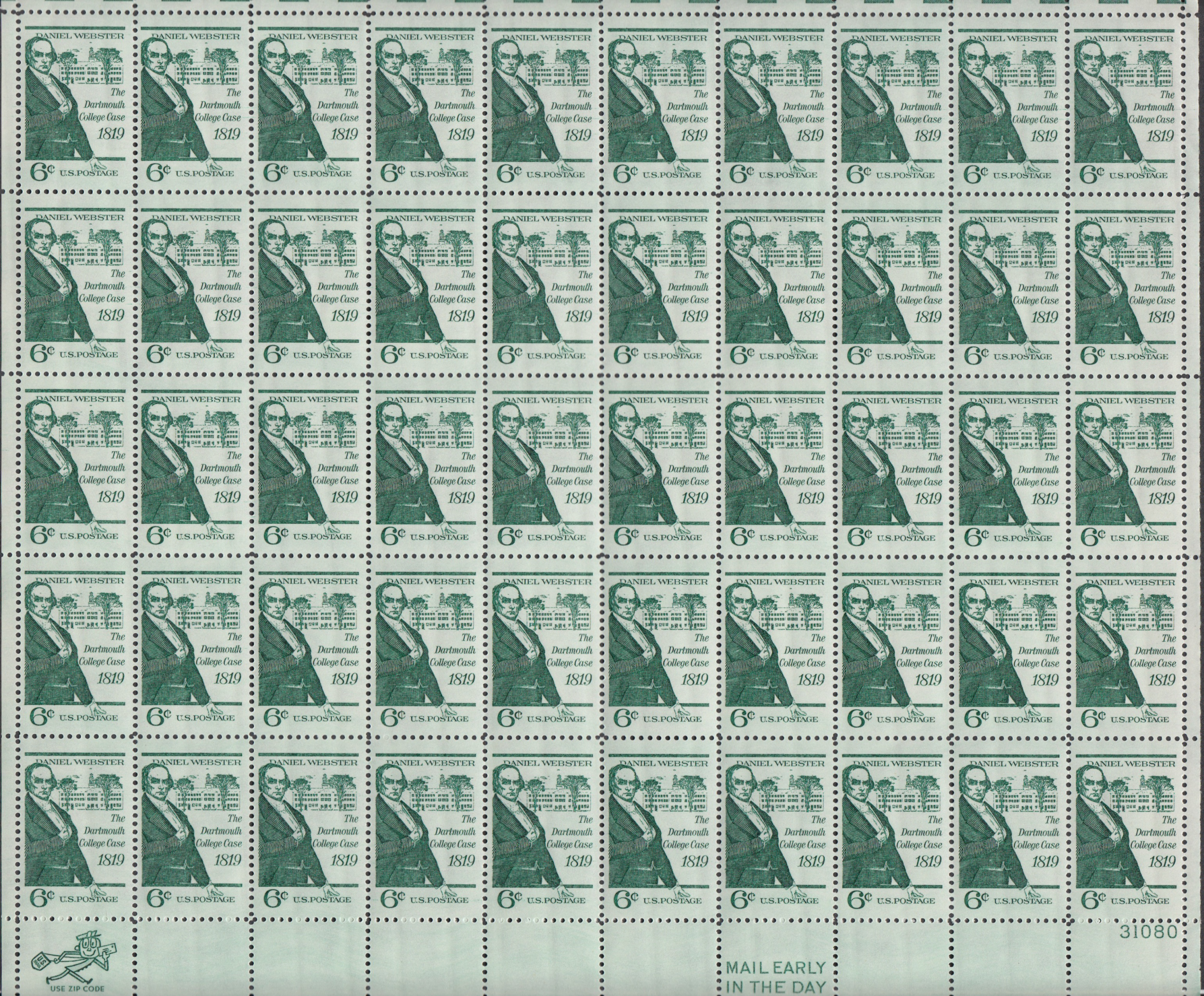 6c Dartmouth College sc # 1380 full sheet of 50 MNH.- I have duplicates of many of the sheets I am listing so photo may not be actual one sent