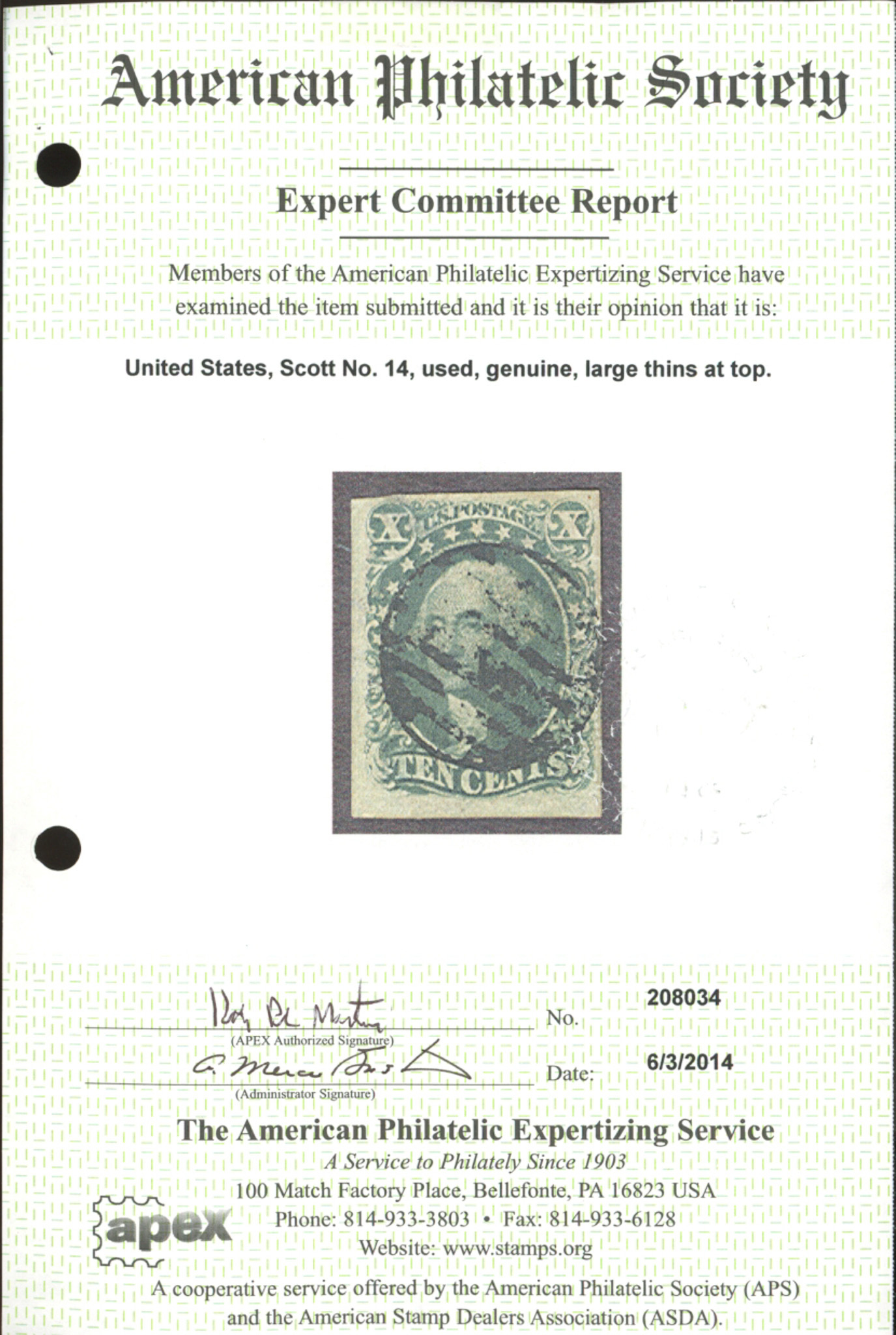 U.S. #14 USED WITH APS CERTSeller Information