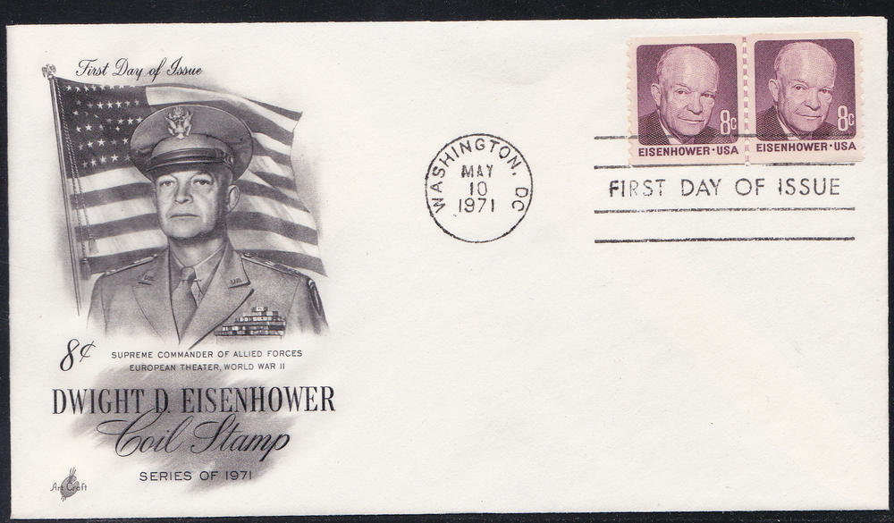 U.S. # 1402, Eisenhower Coil Line Pair, FDC