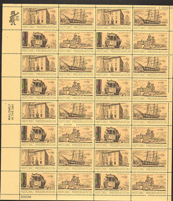 US #1440-43 Mint Sheet Historic PreservationThe image shown may not be the actual sheet you receive.