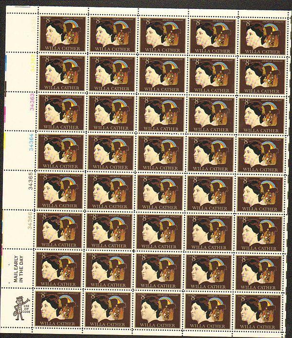 US #1487 Mint Sheet Willa Cather The image shown may not be the actual sheet you receive. Sheets will not be folded. Minor perf separations in the selvedge are normal and are not grounds for return. Centering will ... Read More