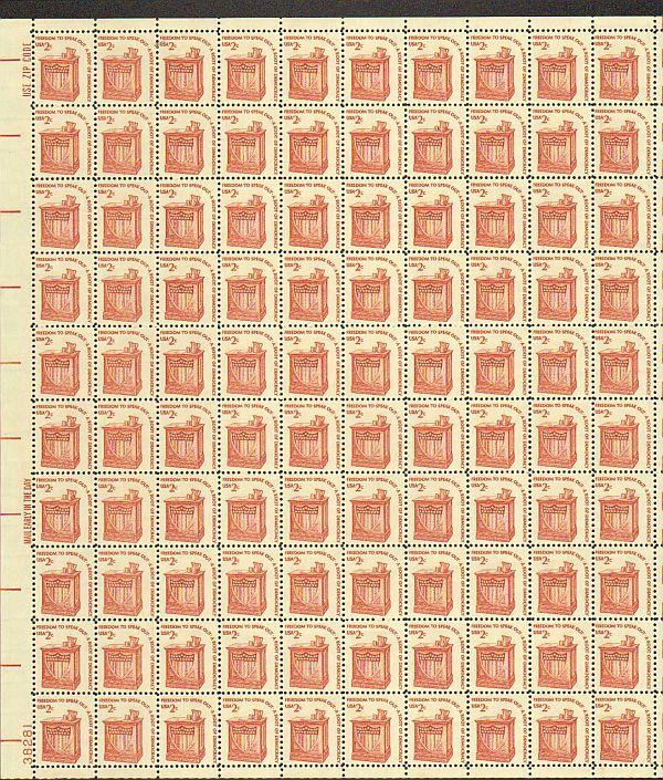 US #1582 Mint Sheet Speakers Stand The image shown may not be the actual sheet you receive. Sheets will not be folded. Minor perf separations in the selvedge are normal and are not grounds for return. Centering wi ... Read More