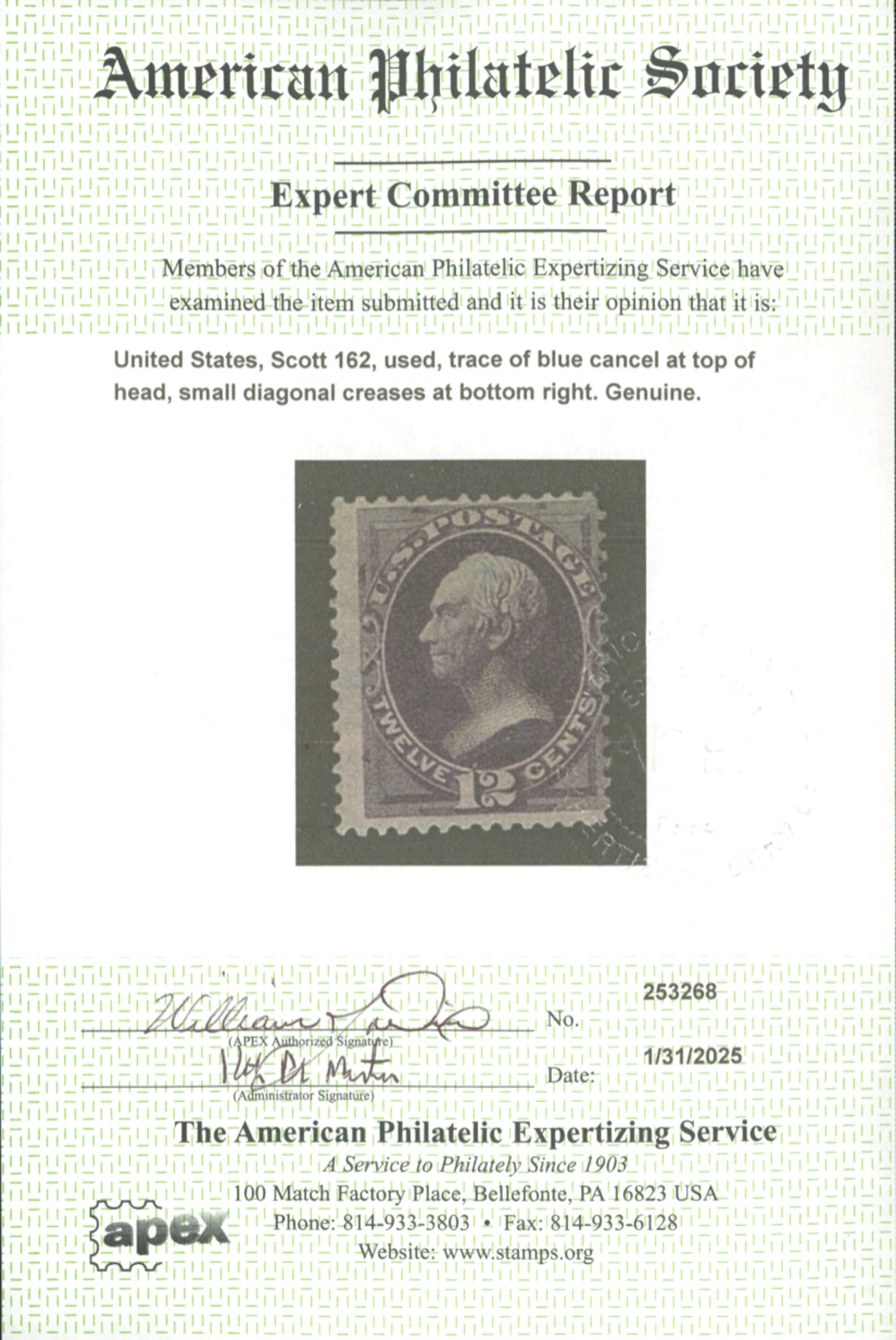 U.S. #162 USED WITH APS CERT