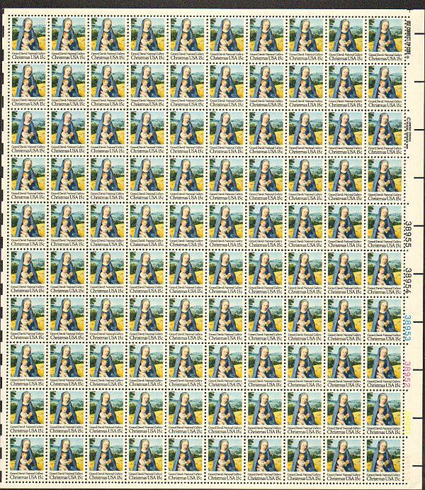 US #1799 Mint Sheet Christmas Madonna The image shown may not be the actual sheet you receive. Sheets will not be folded. Minor perf separations in the selvedge are normal and are not grounds for return. Centering ... Read More