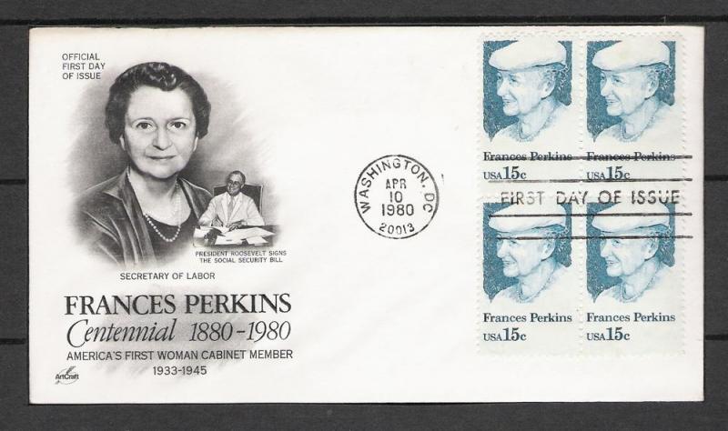 US #1821 Frances Perkins FDC