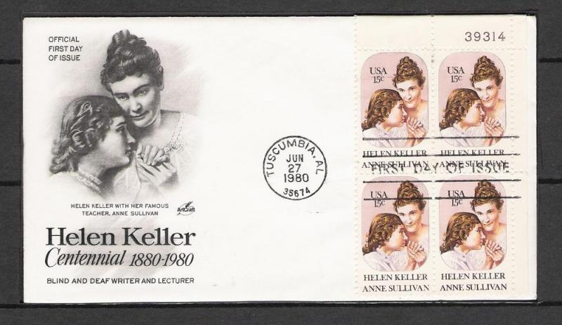 US #1824 Helen Keller FDC