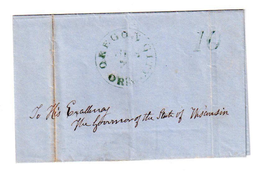 US 1851 FL w/ Green Cds and 10 "Oregon City ORgn" to the Governor of Wisconsin