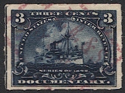 US 1898 3c Battleship Revenue, Sc R165 Used, Magenta company cancel