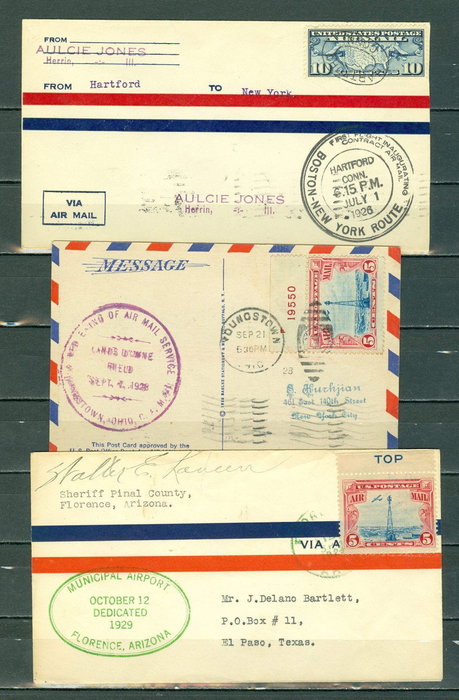 US 1926/28-29 LOT of (3) HISTORIC AIR MAIL COVERS & CARD...NICE