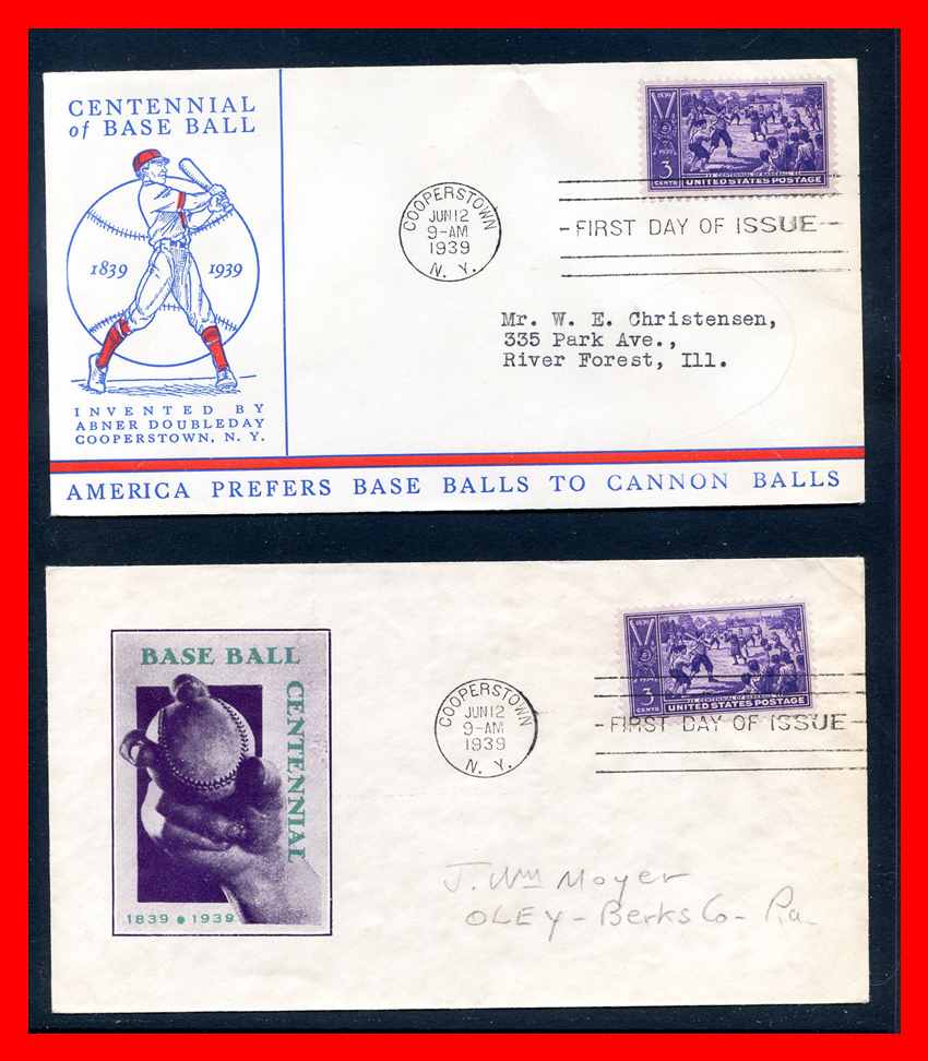 U.S. 1939 #855, Baseball - 2 Different Cacheted F.D.C.'s