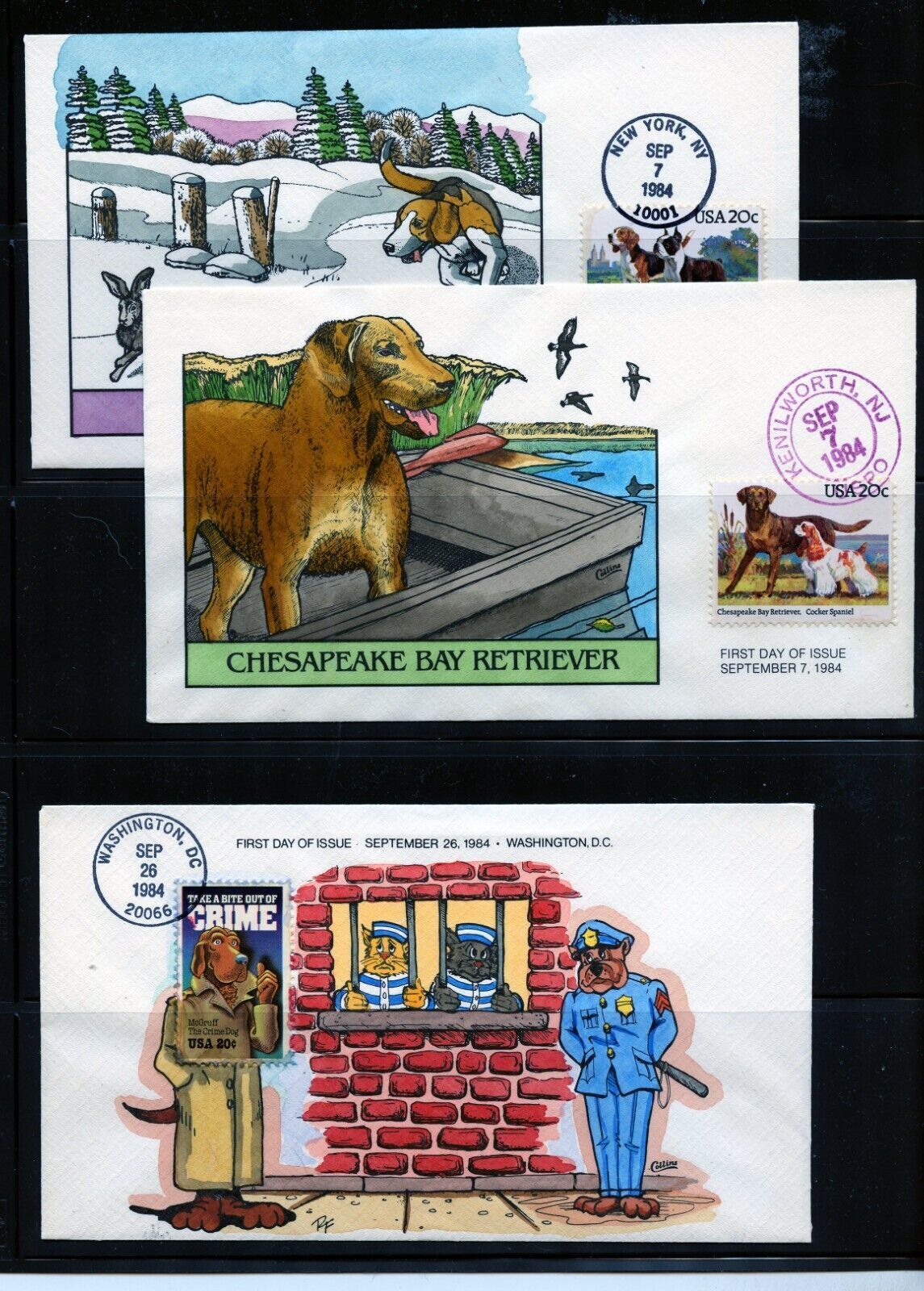 U.S. #2098, 2099, 2102 (US211) Collins FDC (3) different 1984 issues, VF cond