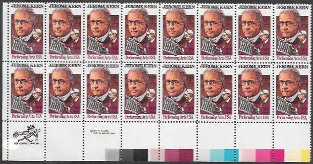 US #2110 MNH Zip Code, USPS Block of 16. Jerome Kern. Performing Arts. Nice.