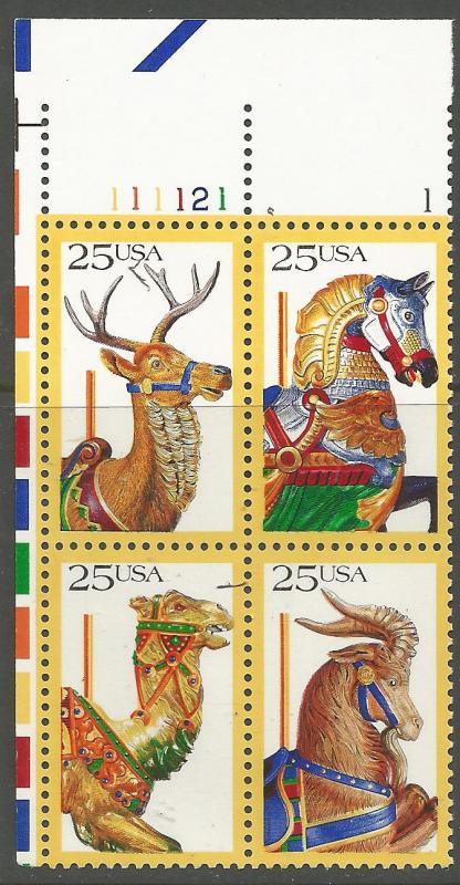 US 2393a , MNH , PLATE BLOCK , UL, CAROUSEL ANIMALS