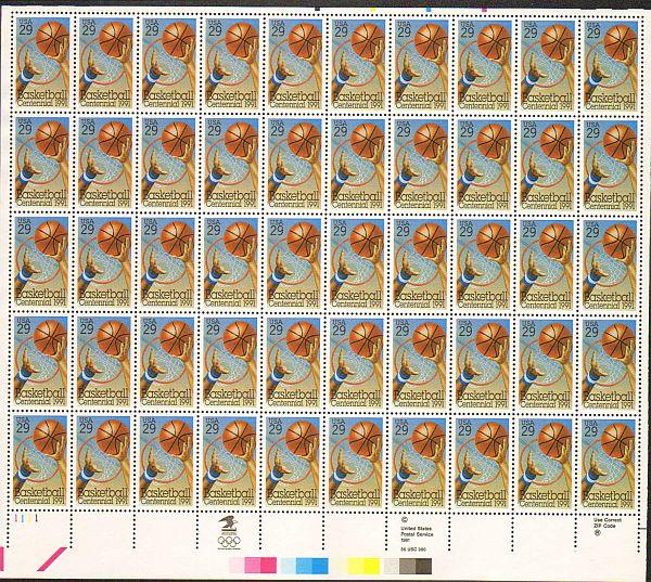 US #2560 Mint Sheet Basketball The image shown may not be the actual sheet you receive. Sheets will not be folded. Minor perf separations in the selvedge are normal and are not grounds for return. Centering will b ... Read More
