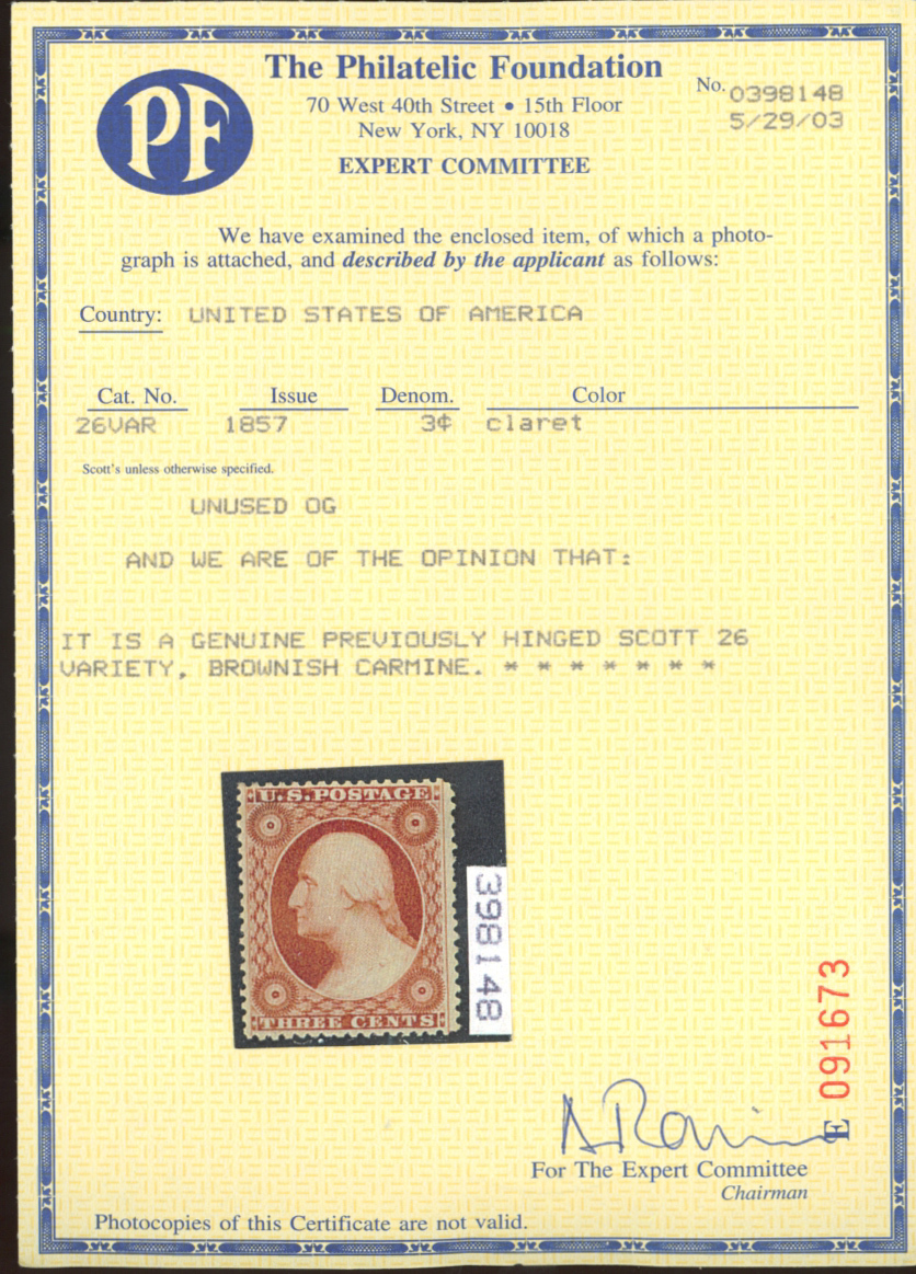 U.S. #26 MINT WITH PF CERTSeller Information