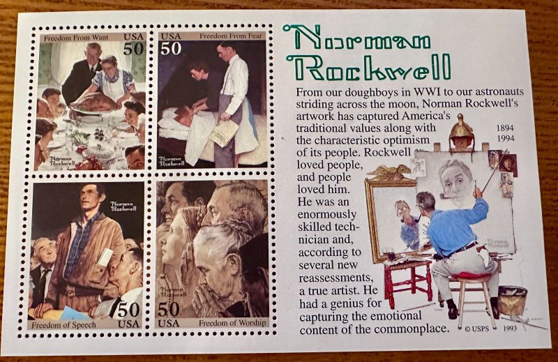 US # 2840 Norman Rockwell SS 1994 Mint NH