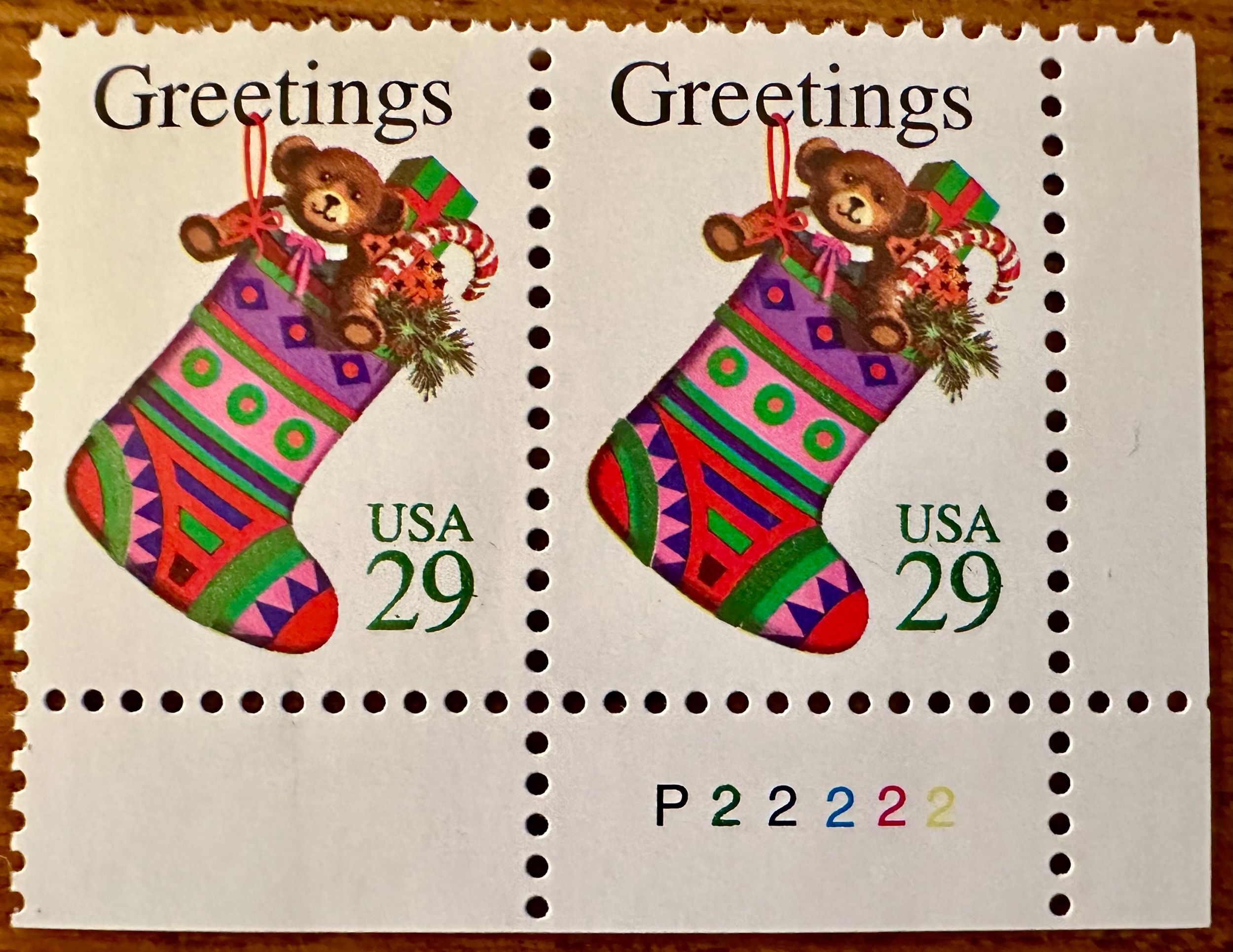 US # 2872 Christmas pair w/plt # 29c Mint NH