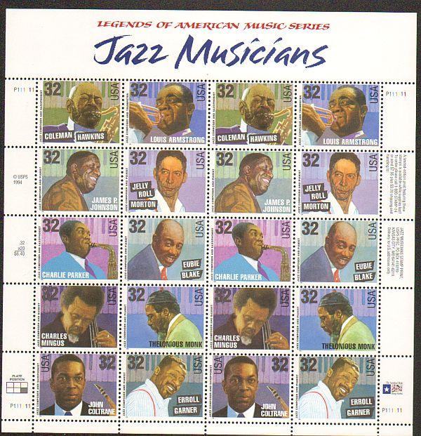 US #2983-92 Mint Sheet Jazz Musicians