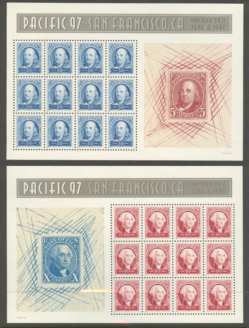 U.S. 3139 & 3140 Pacific 97 Souvenir Sheets, MNH, CV $26.50