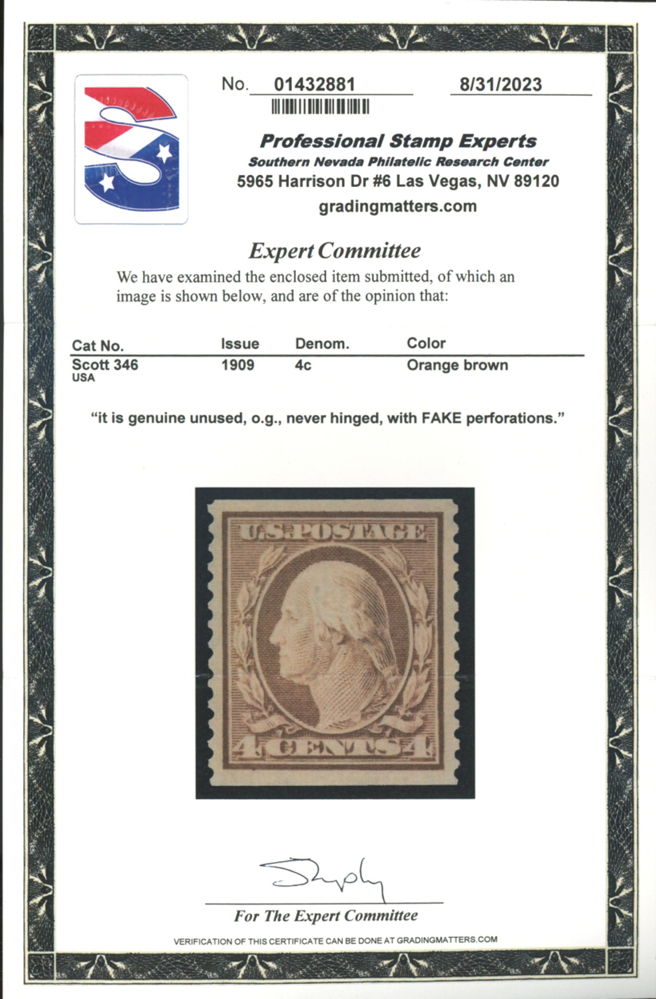 U.S. #346 MINT WITH PSE CERT OG NHSeller Information