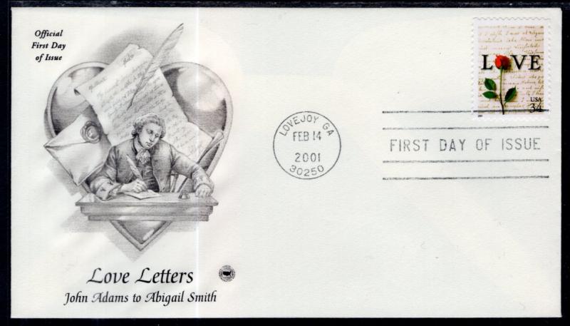 US 3497 Love Letters PCS U/A FDC
